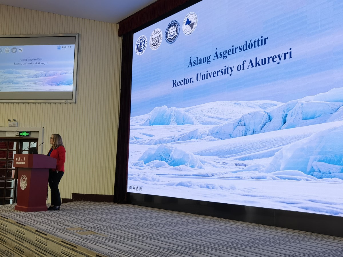 Áslaug Ásgeirsdóttir giving a speech